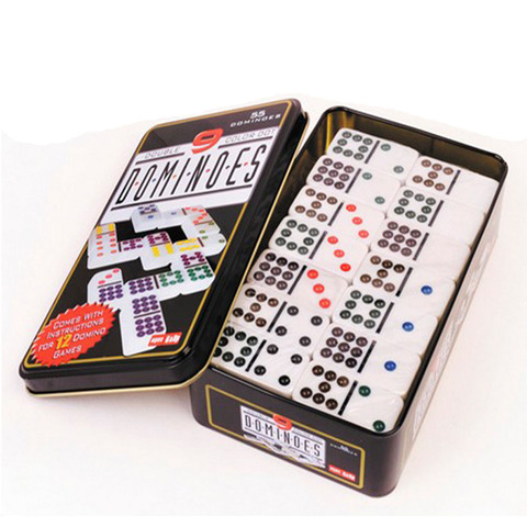 D6 doble seis 6 Domino juego en caja de lata con puntos de colores